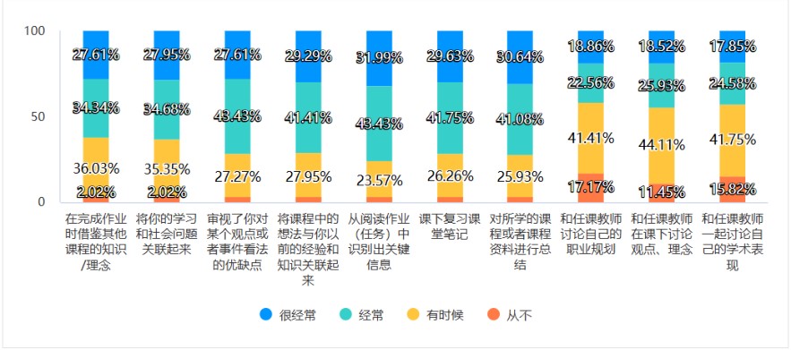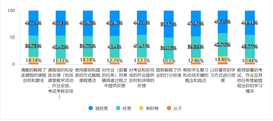 当然,相关测试报告也为学院教师今后教学改进提出了努力方向,员工满意度调查报告显示,任课教师与员工讨论职业规划、讨论观点理念等频度稍低,不足50%。
