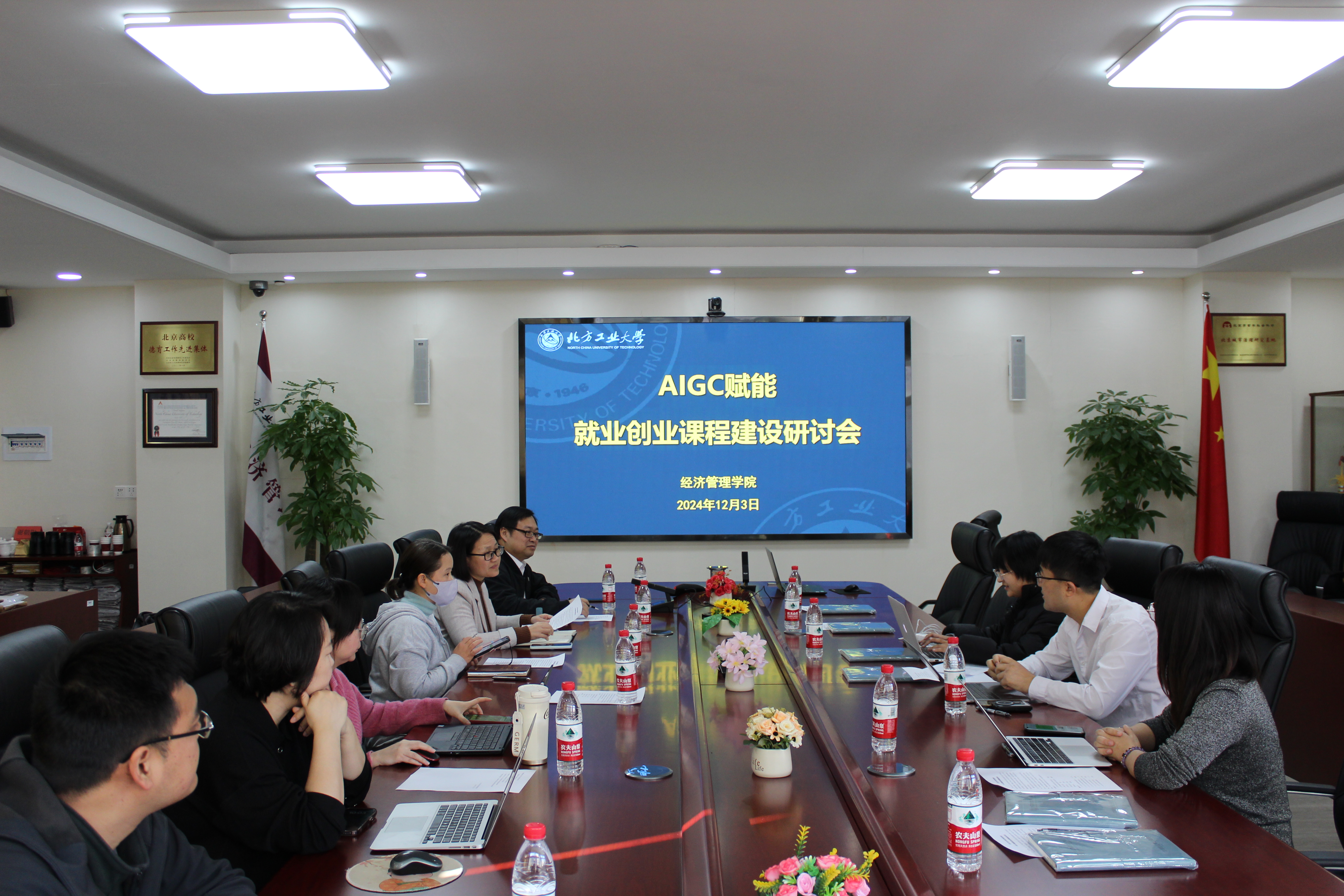 12月3日,bw西汉姆联在励学楼201联合两家企业召开AIGC赋能就业创业课程建设研讨会。公司党委副书记王帏、副经理蒋贵凰、北京宇乐树科技有限公司联合创始人史敏思、北京超智能科科技有限公司CEO杨建刚、商业化合伙人郝夏男,以及bw西汉姆联刘冰、段晓红、张泽圣等老师参与研讨,实验中心主任兼创新创业基地负责人牛天勇主持。