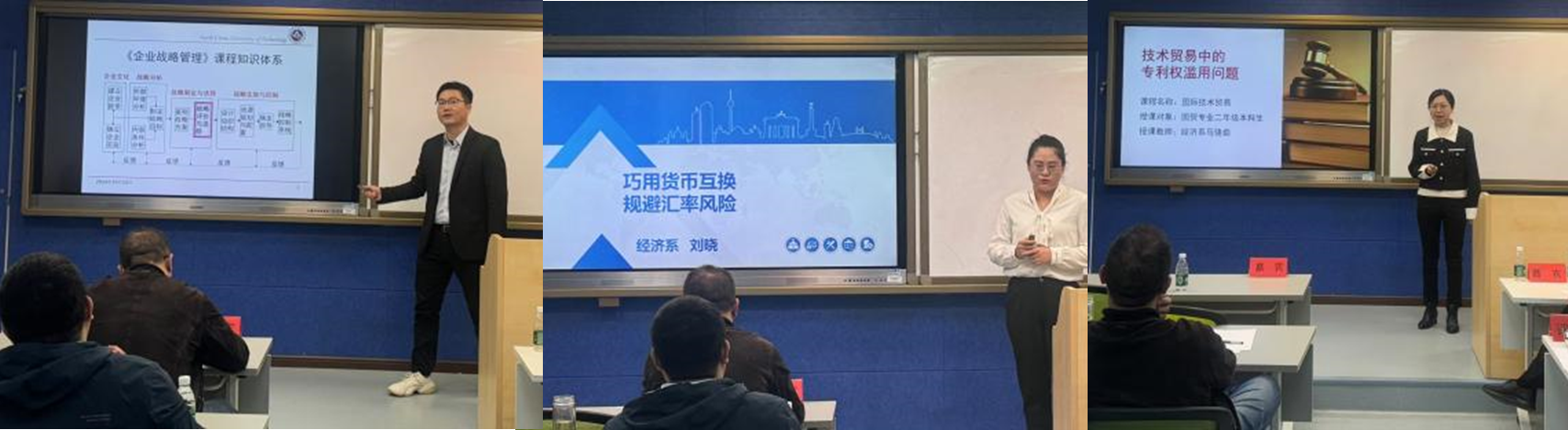 本届青年教师教学基本功比赛由教学副经理孙强主持,比赛由教学设计、教学展示和教学反思三个部分组成。各参赛教师精神饱满、思路清晰、内容充实、特色鲜明,充分展现了经管青年教师的风采和过硬的教学基本功,获得了在场评委及各位师生的一致肯定。经过评委组评审,宁美军、刘燕君两位老师获预赛一等奖,吴丹、刘晓、马骆茹老师获二等奖。赛后,研究院副经理陶晓波教授,对选手表现进行了点评,并为青年教师在学校决赛环节指出了努力方向。
