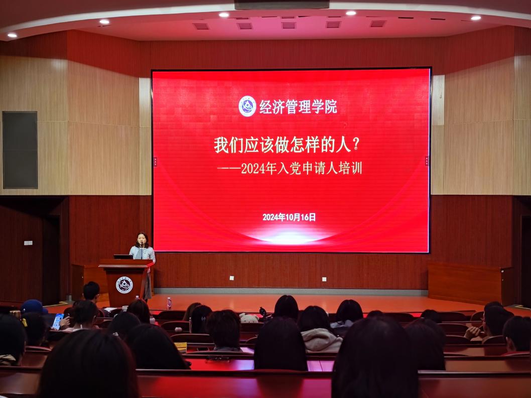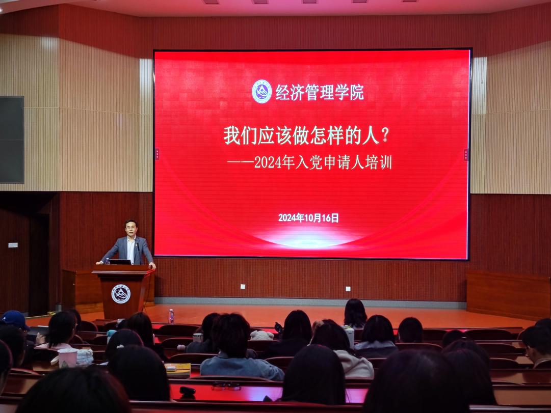 谢朝阳书记以“我们应该做怎样的人”为主题,从“我们为什么活着,我们应该怎样活着”这一哲学问题出发,告诉同学们成功和失败都是一场人生修炼,追求真正的幸福在于利他,要做一个内心强大的好人。引导同学们,要树立正确的世界观、人生观、价值观,系好人生的第一粒扣子。在谈到“为什么入党”时,谢书记为同学们解读了党的性质宗旨、发展历程和发展方向,他强调,入党是当代有追求的青年的最好选择,党的规范和要求不是束缚而是帮助大家自律成长的动力。最后谢书记号召同学们,作为新时代的青年,要树立“大我”“大家”的观念,胸怀天下,明确认识到我们党的初心使命和奋斗目标,明晰肩负的使命与责任,勇于担当作为。同时要树立经管人的大家庭意识,为构建勤奋创新、阳光向上、敬业乐群、善于表达的优良学风文化贡献自己的力量。