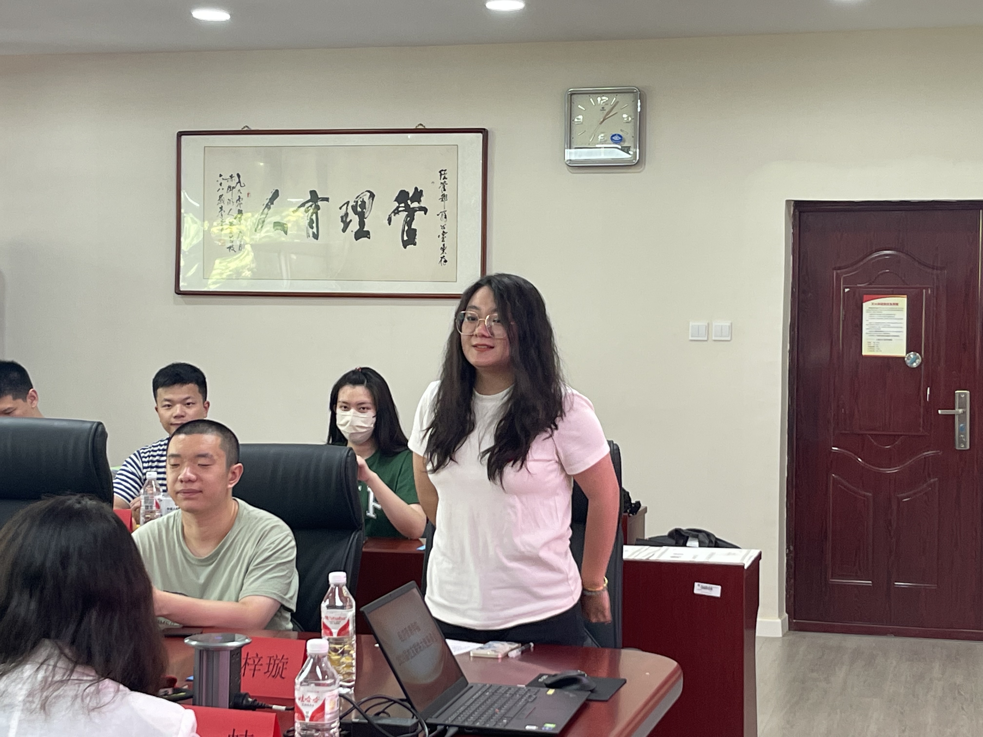 管20-2班帅梓璇代表员工联络大使发言,感谢学校、学院对自己的悉心培养,表示今后将努力履行员工联络大使责任,以员工的身份,继续关心和支持学校和学院的发展,为母校的建设和发展贡献自己的一份力量。