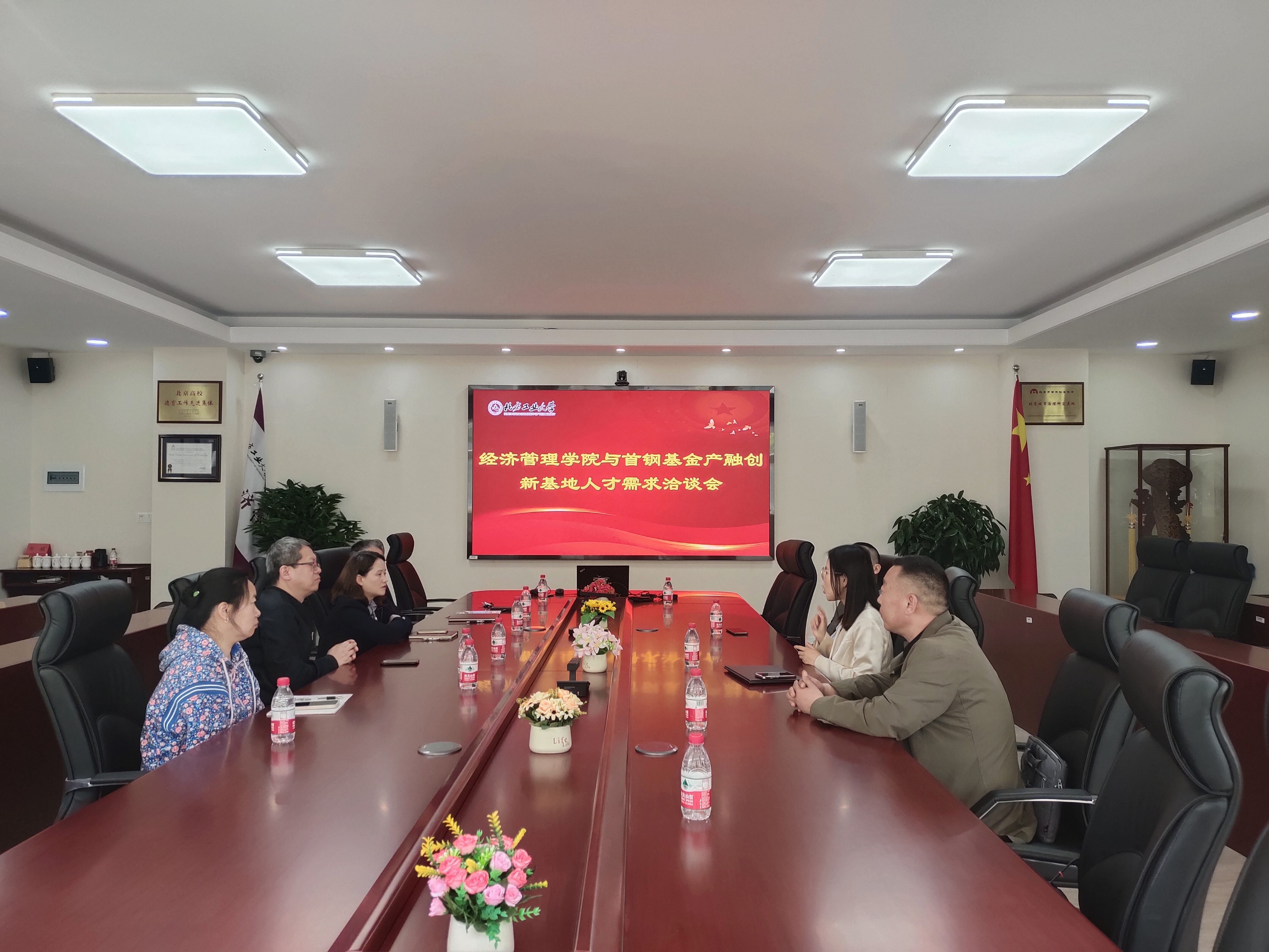 谢朝阳书记从学院的人才培养理念、人才培养模式等方面对学院经管类人才培养情况进行了介绍,希望通过校企人才供需对接,拓宽双方在产学研等方面的合作渠道。刘春颖对首钢基金产融创新基地企业孵化情况做了介绍。公司对国贸和管理专业人才需求进行了详细介绍。