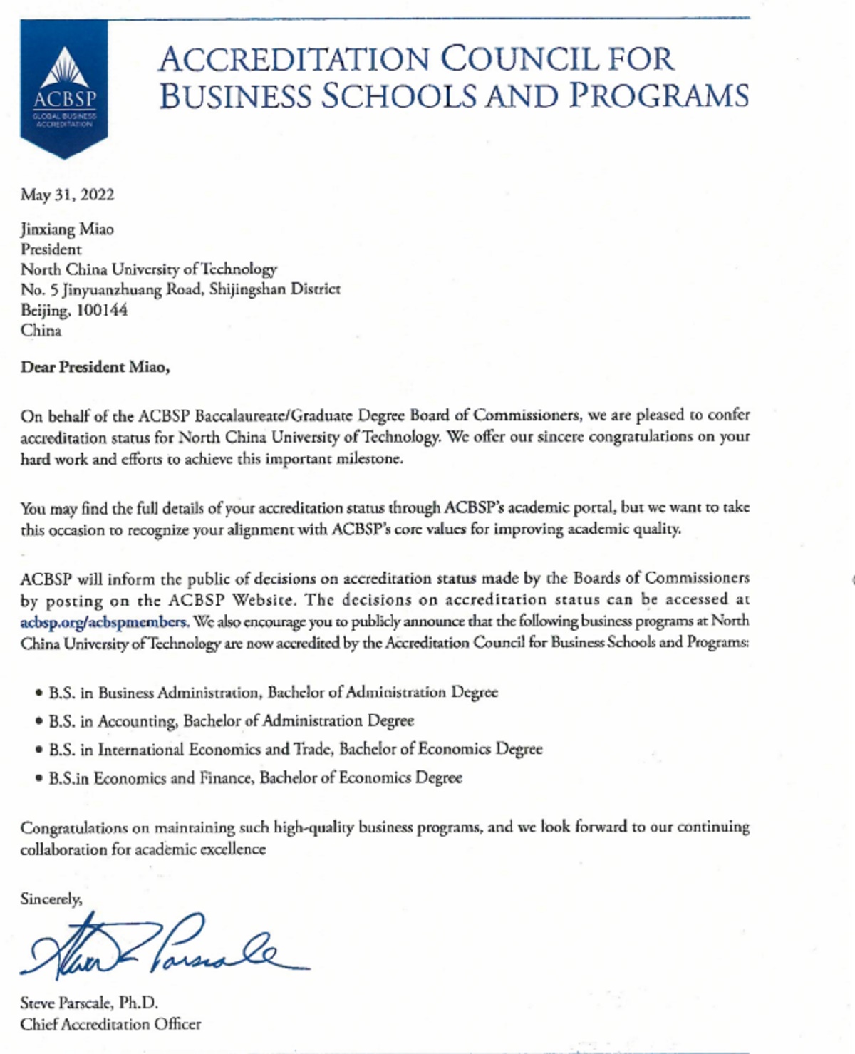近日,学校收到ACBSP (Accreditation Council For Business Schools and Programs,美国商科认证委员会)官方认证通过通知,bw西汉姆联工商管理专业、会计学专业、国际经济与贸易专业、经济与金融四个专业全部顺利通过ACBSP国际商科专业认证。至此,公司拥有北京地区首家获得ACBSP国际认证的学院和专业。