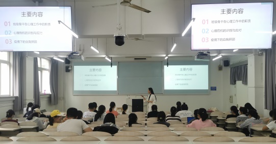 赵姝迪老师从“破冰活动”引入,她指出,心理压力是正常现象,要努力克服学习、生活等方面的焦虑;要尝试自我关怀行动,保持同他人的连结,努力从各种不同情绪中找到其积极意义。并重点介绍了心理委员的职能、心理危机识别和应对等三部分内容。结合具体案例详细讲解了心理委员的工作内容、方法、载体和素质要求,介绍了心理健康教育工作网络体系和心理委员的职责,引导员工骨干充当学校和同学之间的桥梁和纽带,进行沟通、交流和反馈。