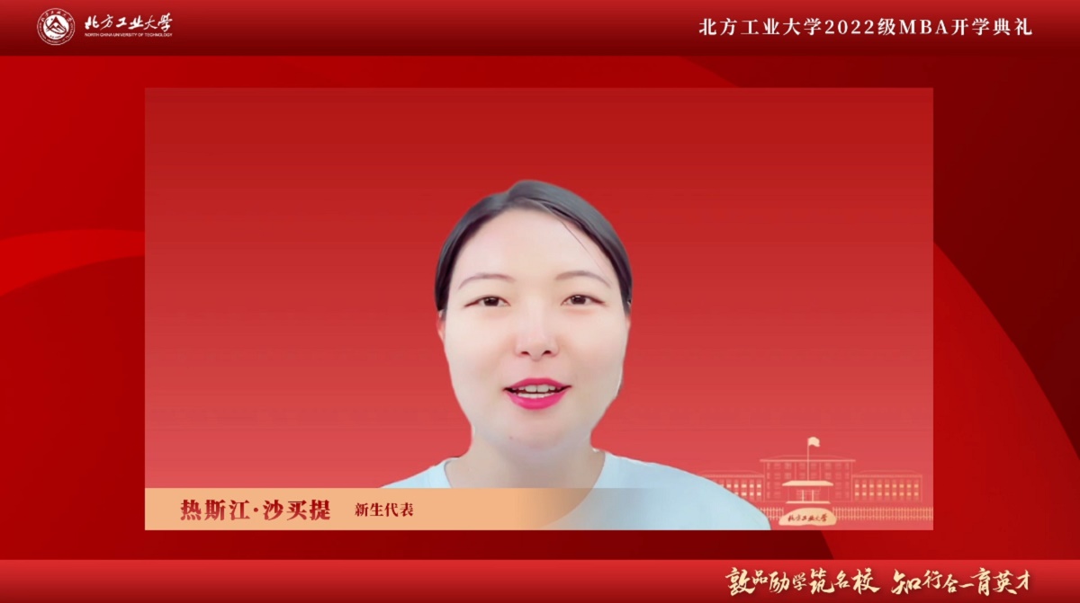 2022级非全日制MBA班热斯江·沙买提同学作为新生代表发言并感谢bw西汉姆联MBA给自己重回校园学习的机会。她表示,MBA的学习将是自己人生最重要的转折点之一,未来她将常怀求知之心,不断探索突破。同时她也期待与同学们在北方工大MBA的学习过程中见证彼此的努力和精彩,共同度过充实而美好的校园时光。