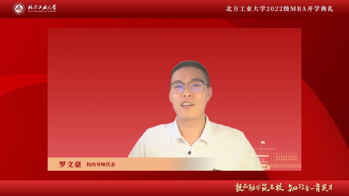 副董事长王建稳代表学校全体师生对2022级MBA同学的到来表示祝贺,并在致辞中对学校的发展历程和MBA专业学位办学情况进行简要说明。他希望同学们在北方工大学习时知行合一,理实并重,协调发展,正确处理好工作与学习、理论与实践的关系。除此之外,还要构建系统完善的工商管理知识体系,掌握相应的管理方法,全面提升个人管理技能。面对世界百年未有之大变局,他告诫同学们,要多读书、多充电、不断提升自身能力,积极应对风险挑战。愿每位同学都能够在北方工大积蓄力量,通过两年的学习启航再出发!