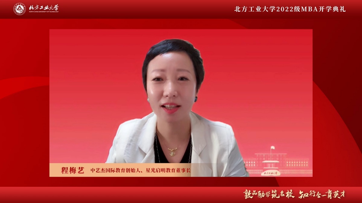 中艺杰国际教育创始人、星光启明教育董事长程梅艺代表校外导师对新加入bw西汉姆联MBA的94位新生表示衷心祝贺。她表示,十分期待与大家共学、共创、共享。作为校外导师,她将始终如一地关心和支持学院的团队建设、实务创新和人才培养,尽己所能,与学院同心共进。