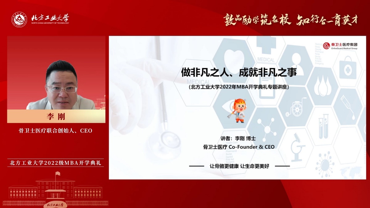 骨卫士医疗联合创始人、CEO李刚以《做非凡之人,成就非凡之事》为题,进行分享。他认为“非凡之人”不仅是民族英雄、社会名人,还是在各自工作岗位上创造出不同社会价值的人。成为“非凡之人”最重要的是自我价值检验(能力检验)与重塑和人生目标的阶段性设计。我们可以通过检验个人经营管理能力、第一性原理思维能力、战略规划能力等来进行自我价值评估,从而弥补自己的不足。对于如何成就“非凡之事”,他以创新创业为例,向大家分享了成功创业需要具备的三个必要条件:首先要选择真正有价值的事业,发挥其社会价值和商业价值;其次要找寻志同道合的伙伴,齐力聚势,共谋发展;最后要做好成就事业的各项准备,有条不紊地推动事业发展。他表示,白日莫闲过,青春不再来。希望同学们珍惜在校的每一天,努力学习专业知识,为自己蓄势赋能。