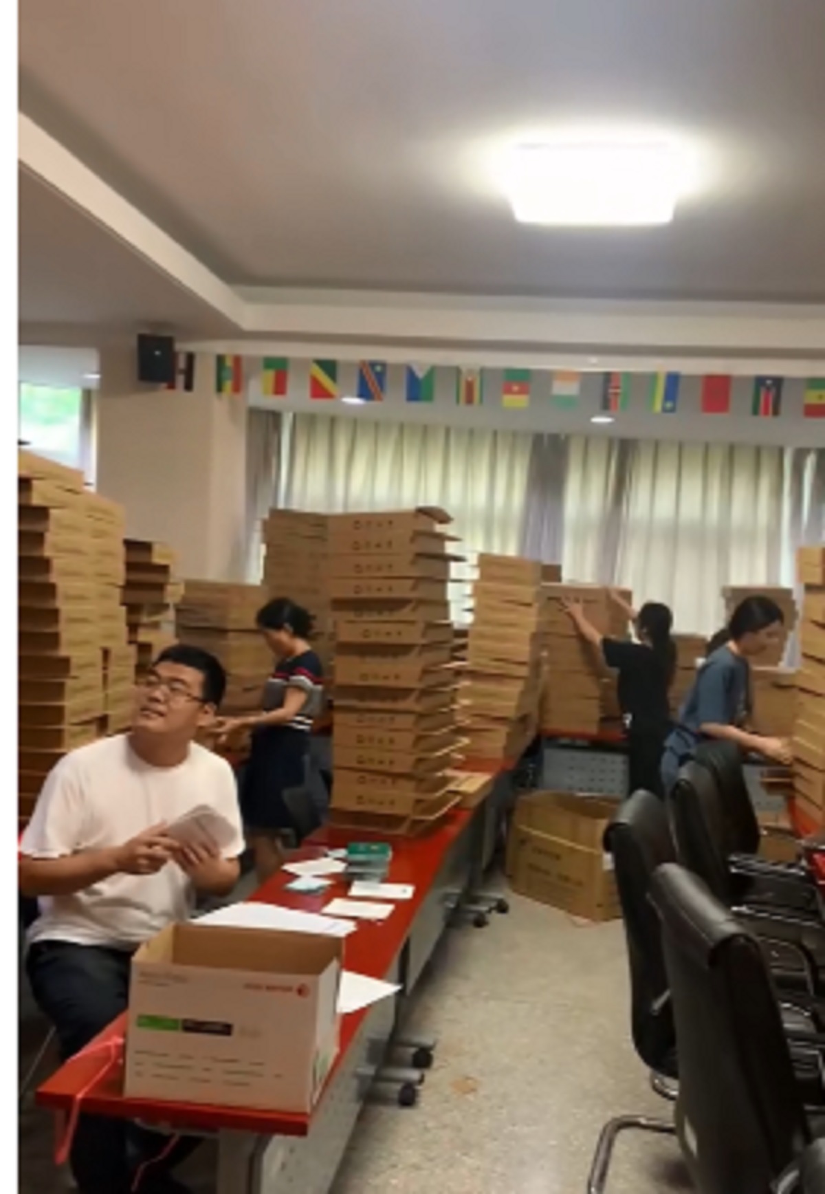 在材料整理打包过程中,学院各位老师纷纷化身“打包员”、“快递员”,分工协作、耐心审核、细心整理、精心打包......用最有力的行动、最真挚的情感、最质朴的付出为全体毕业生提供暖心周到的服务,助力这场特殊的“毕业寄”,努力让员工感受到“家”一样的温暖。