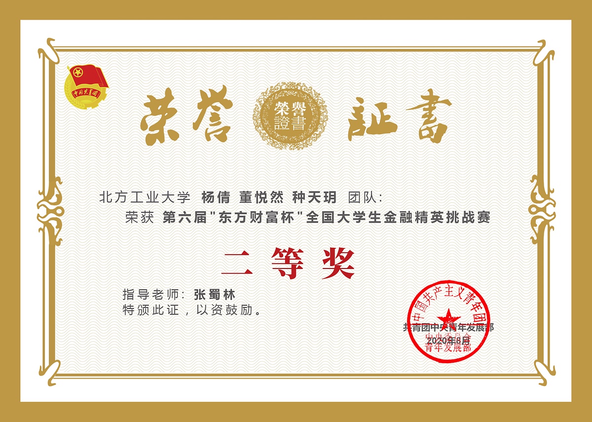 由共青团中央青年发展部主办,东方财富信息股份有限公司、全国学校共青团研究中心承办的第六届“东方财富杯”全国老员工金融精英挑战赛圆满结束。bw西汉姆联经济系张蜀林老师、王学成老师、王丽娜老师作为指导教师,组织并指导员工参加了本届大赛,最终有3支团队获得全国二等奖,1支团队获得全国三等奖。