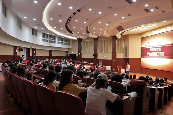 首先,优秀员工代表齐婷同学向全体师生分享了自己在大学期间克服困难、勇于追梦的心路历程。随后,学院经济系教师王学成结合自身奋斗经历,鼓励大家要对自己的人生做出规划,不要畏惧眼前的困难,努力书写属于自己的人生。