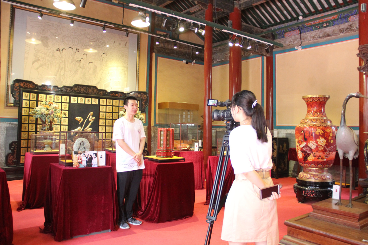 假期里,实践团的同学以小组为单位,陆续来到北京燕京八绝艺术馆,录制燕京八绝文化讲解小视频。每一组的同学选择“燕京八绝”其中之一的工艺,以“技艺+展品”相结合的方式,录制讲解小视频。每一位同学在镜头前,细致而又流畅地讲解着燕京八绝的工艺知识,讲述着耐人寻味的工匠精神。