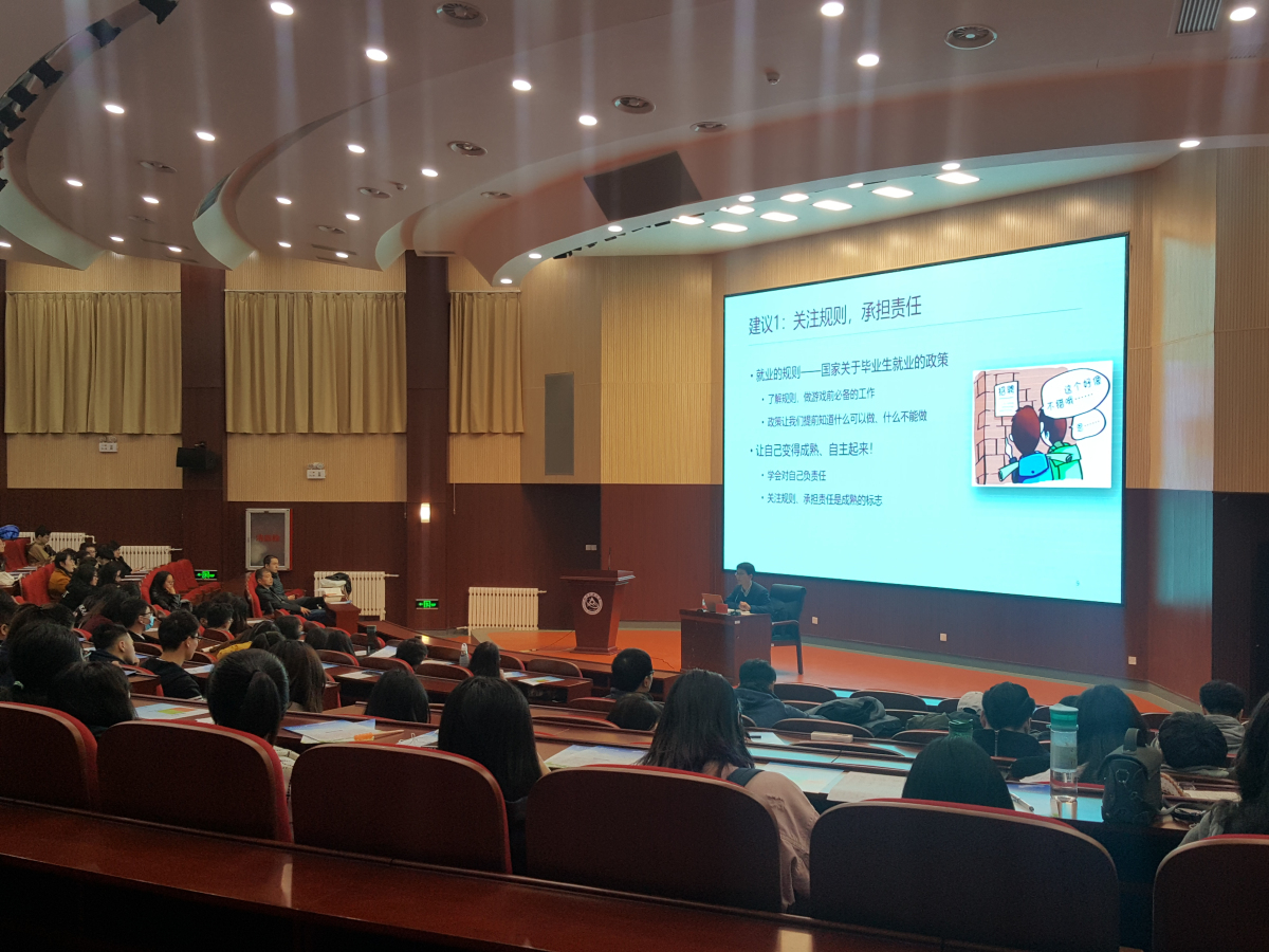 宏观引导:11月2日学院邀请人才招聘处处长孙宗瑞为2019届毕业生作就业指导,孙老师以就业形势的分析解读为切入点,分析了当前严峻的就业形势,以及当今大学毕业生在招聘市场所具备的优势与不足。在此基础上,给出了具有针对性的就业建议。号召员工要关注规则,勇担责任;锻炼技能,做足准备;积极主动,务实进取。全程穿插真实个例,既活跃了现场氛围,又颇具警醒作用,对于还处于就业懵懂期的同学们来说极具“解渴”效果。