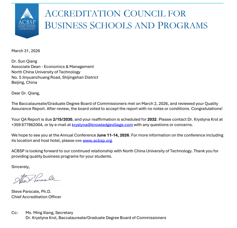 这是公司自2025年获得ACBSP清洁会员(Clean Member)认证后,在国际商科认证进程中取得的又一重要进展。