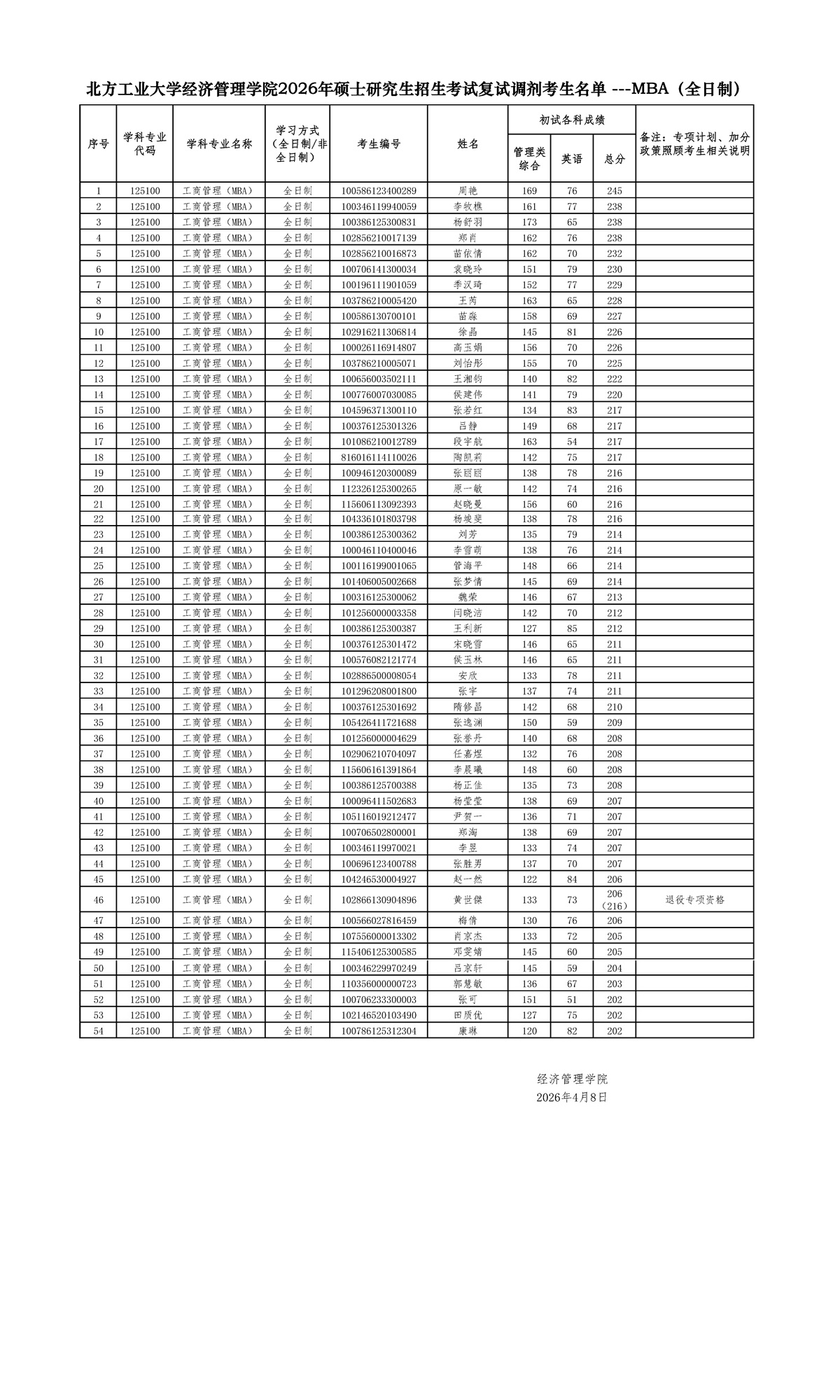 bw西汉姆联2026年硕士研究生招生考试复试调剂考生名单 ---MBA(全日制)