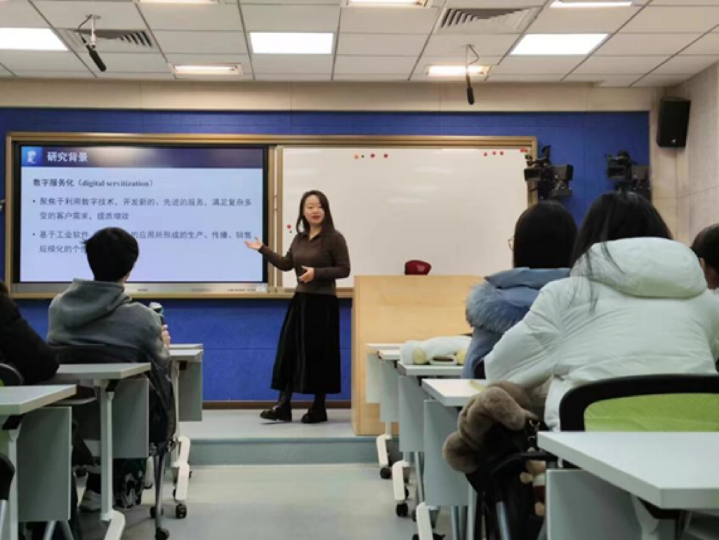 整个讲座内容由浅入深,启迪思维,不仅使同学们对制造企业数字服务化的相关研究有了更新的认识,拓展了研究视野,而且帮助同学们理解到如何梳理研究思路,如何使用不同的研究方法去实现研究目标,极大地激发了同学们的科研积极性。