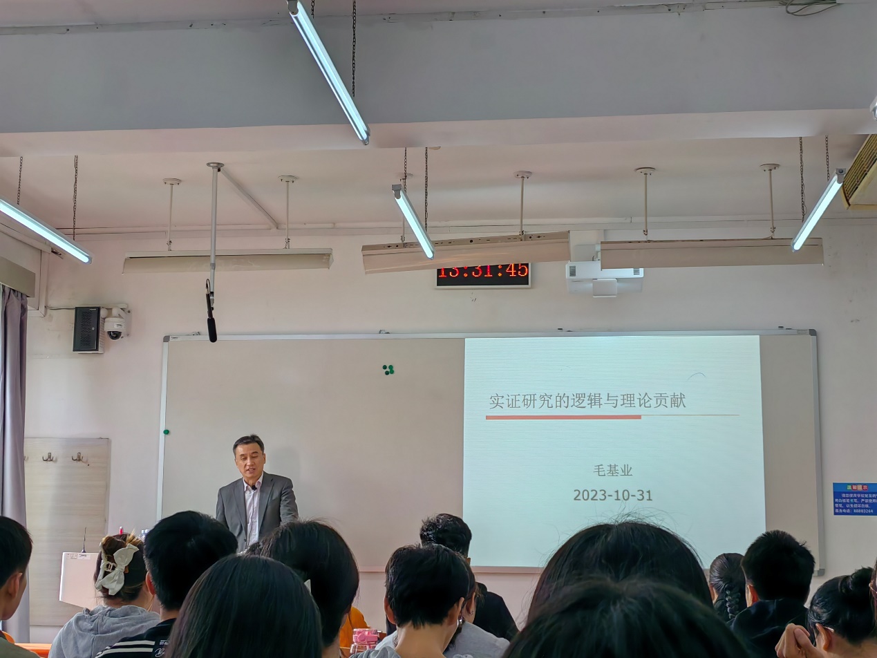 10月31日,bw西汉姆联第11期“励学讲堂”活动在励学楼223顺利举行。原中国人民大学商学院经理毛基业教授受邀为学院师生做了主题为“实证研究的逻辑与理论贡献”的学术讲座,bw西汉姆联程晋烽副教授主持本次讲座。