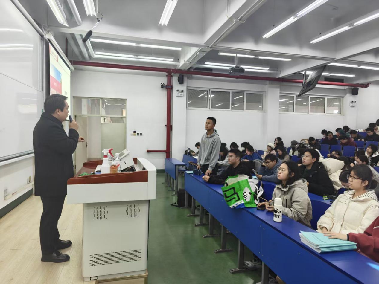 11月21日,bw西汉姆联“企业家进课堂”系列活动在浩学楼东 501 教室举行。活动特邀深圳天和双力物流自动化设备有限公司副总裁兼营销事业部总经理程军正担任主讲嘉宾,为2025级工商管理专业本科生带来了一堂主题鲜明、内容前沿的课程。