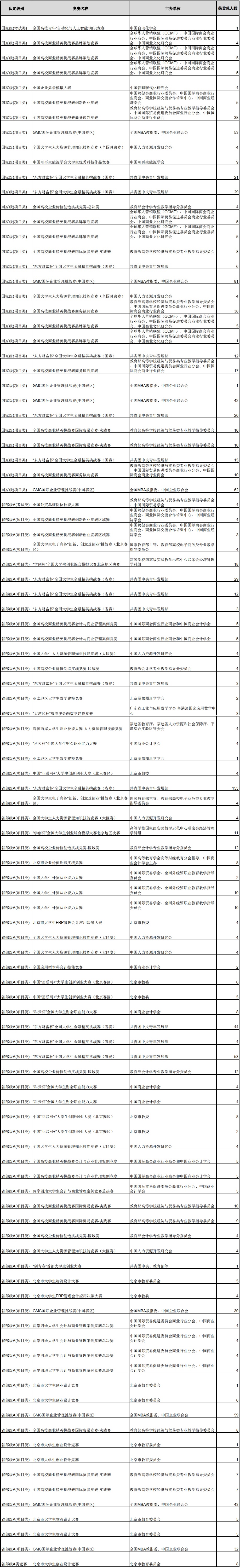 获奖信息如下,其中:“国家级(考试类)”1项,“国家级(项目类)”31项,“省部级A(考试类)”1项,“省部级A(项目类)”70项,“省部级A类竞赛”1项。