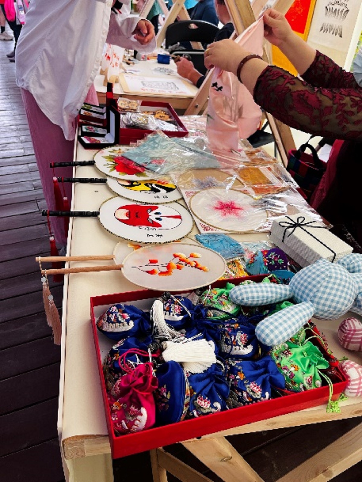 公司自主设计的“毓秀情深”、空小竹、和香香囊等主题系列文创产品以及传承人为学校设计的剪纸作品也展示其中,寓校园文化于作品之中,将传统融入现代、非遗融入生活,在现场颇有反响,体现了非物质文化的活态传承。