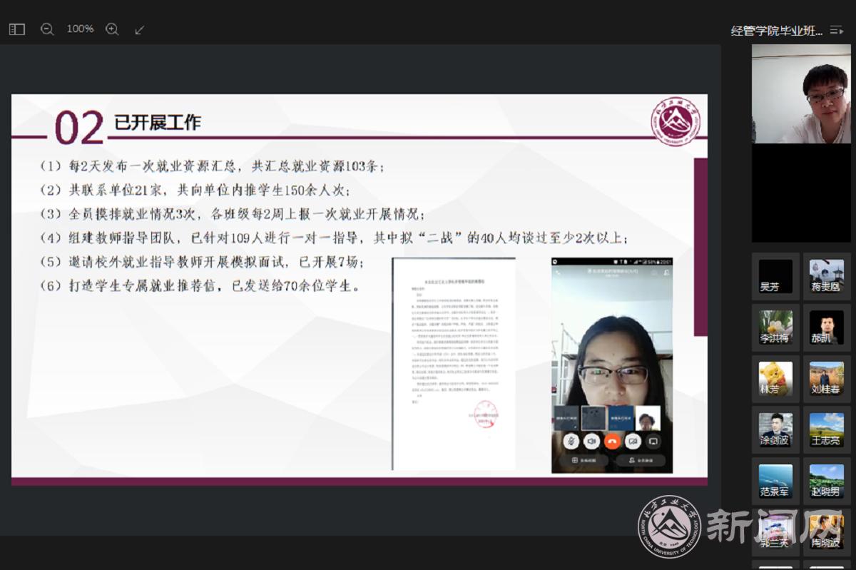 本次会议的召开正式拉开了学院就业冲刺百日行动,前期学院通过全员信息摸查、组建就业指导教师团队、线上“一对一”模拟面试、打造个人专属求职推荐信、定期公布线上就业资源信息等实际行动,有效的推动了就业工作。后续,学院将通过以班级为单位召开就业推进会、根据就业情况分类指导、一对一指导落实等实际举措,发动全员老师力量,确保在疫情防控常态化下高质量完成毕业生就业各项工作。