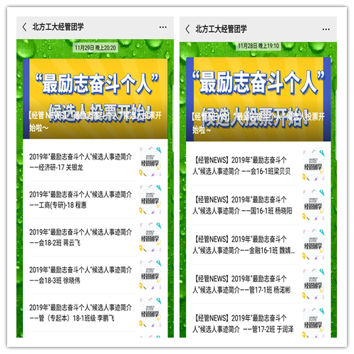 为进一步挖掘身边的优秀典型案例,讲好自己的励志故事,学院于近期开展了“最励志奋斗个人”的评选,通过候选人推荐、学院初评、网络展示,最终确定了10位候选人。本周,学院组织“最励志奋斗个人”投票评选,由各班推选出的员工代表进行投票,最终五名同学获得该荣誉称号,并将在年底学院学风总结大会中进行颁奖。