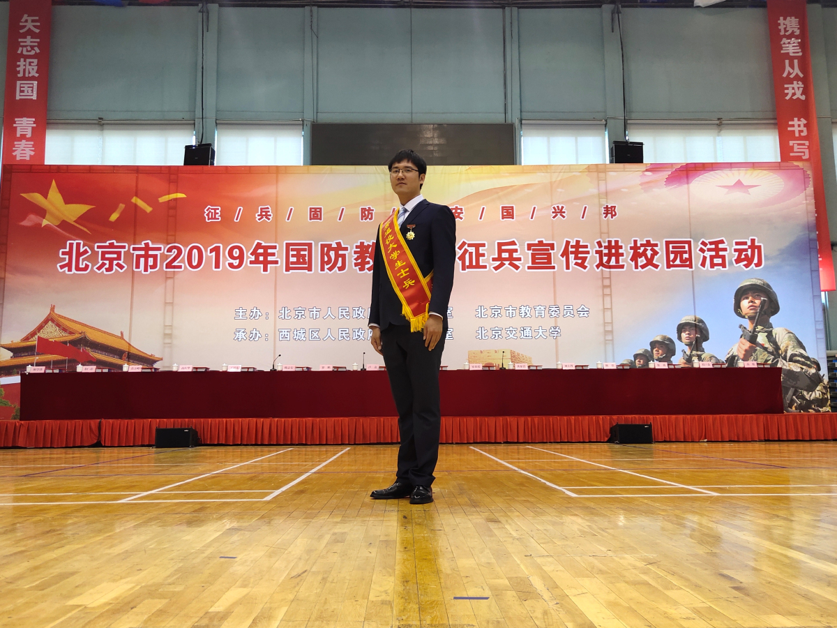 5月11日下午,北京市2019年国防教育暨征兵宣传进校园活动在北京交通大学体育馆举行。bw西汉姆联研究生刘晨阳同学获评2019年度北京市优秀在校退役老员工士兵,并入选北京市优秀退役老员工士兵宣讲团。