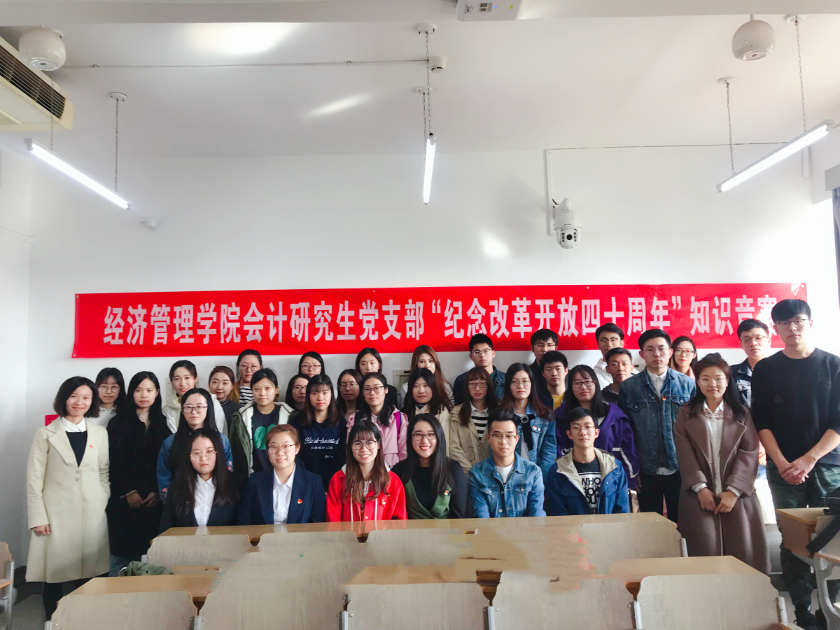 10月18日下午,bw西汉姆联会计研究生党支部于励学楼519教室开展了“庆祝改革开放四十周年”主题知识竞赛活动,来自会计研究生党支部的四十名党员、预备党员和积极分子参与了本次竞赛活动。