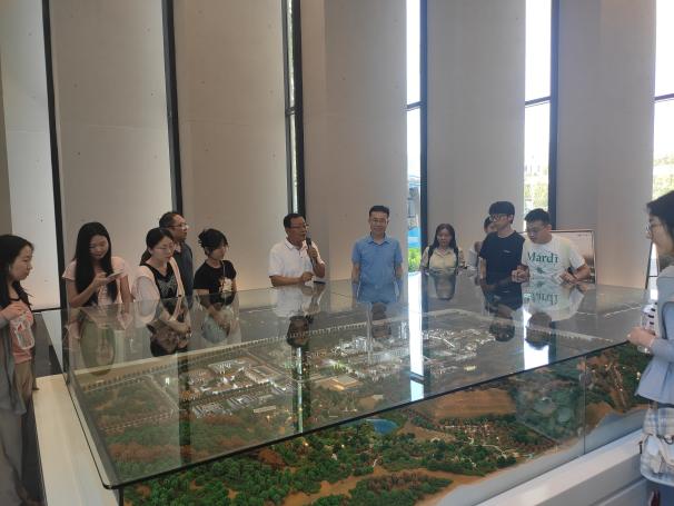 此次活动以“实践育人,传承红色基因”为主题,旨在通过参观访学,让党员学员们深刻了解金隅兴发科技园在新时代背景下发展壮大的典型经验和先进模式,激发员工爱国热情和创新精神。在金隅兴发科技园,大家深入了解园区的发展历程、发展战略和主要产业布局。金隅兴发科技园建设项目位于怀柔区怀北镇,占地面积2530亩,总建筑面积21.47万平米,主要包括由丘成桐院士领衔的北京市新型研发机构--雁栖湖应用数学研究院、高等研究院以及德勤书院等七个机构。参访团队看着沙盘,听着讲解员的讲解,了解原有水泥厂转型升级改造及科技园当前建设功能布局设计情况。