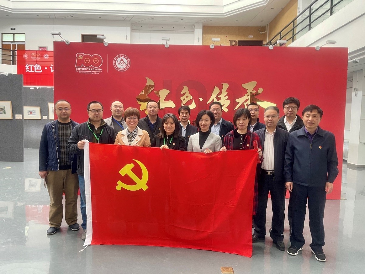 随后,学院教师集体参观由公司和首都师范大学共同举办的“红色•记忆•传承——双校庆祝建党百年作品联展”。展览通过两校员工手绘和海报设计等艺术形式,回顾中国共产党的光辉历史,表达青年爱党、爱国、爱社会主义的深厚情感和不负青春韶华的信念与信心,展现青年员工奋进新时代的青春力量。